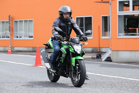 この課題では、バイクの傾きの維持、目線の送り方、アクセルや半クラッチを一定に保つ感覚を身につけていきます。