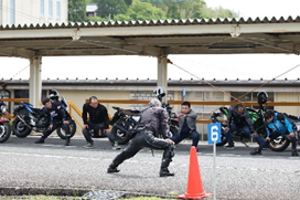排気量や車種を問わず、それぞれの参加車両に合わせて通過しやすい均等な間隔でパイロンを配置し、多くの本数を反復して練習していただきます。